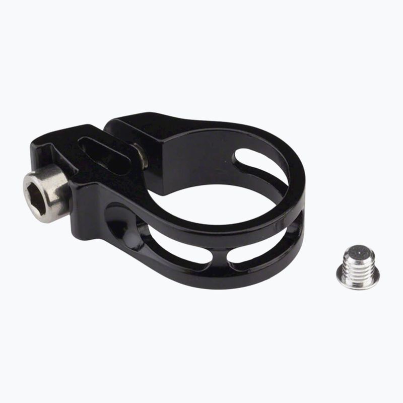 SRAM Trigger Clamp/Bolt Kit shiny black clamp is a reliable mounting component designed for SRAM X0, X9, and X7 shifters. Made from aluminium, it offers optimal strength and durability, performing well in various terrain conditions. With a diameter of 22 mm, it allows for precise and stable fitting to the bicycle handlebars, contributing to comfort and safety while riding.