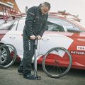 The stationary inflator allows even wide tyres to be inflated quickly without requiring a lot of force. Thanks to its stability, filling the inner tube with air is a very convenient operation.