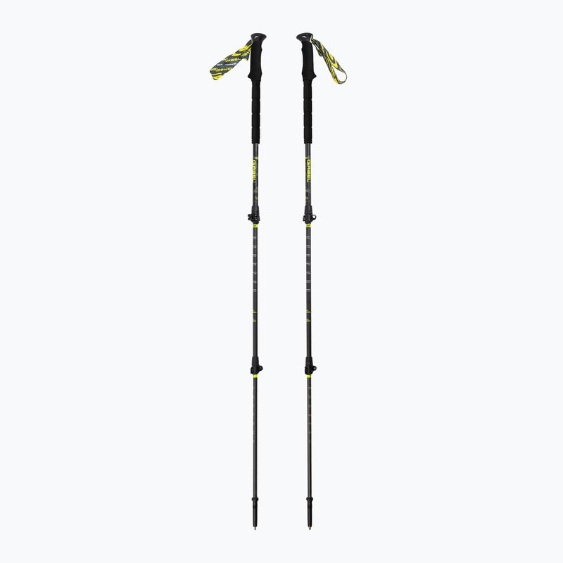 Gabel's patented quick-release system, which allows the strap to be easily and securely clipped in and out of the handle of the poles. In addition, it allows you to adjust the length of the strap in seconds - simply pull it up, select the desired length and close the buckle.