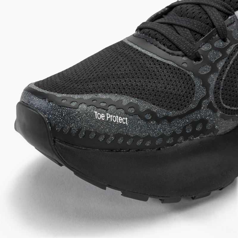 The outsole features an advanced tread pattern that allows for stable footing, regardless of the surface, making it possible to run on uneven terrain and in inclement weather.