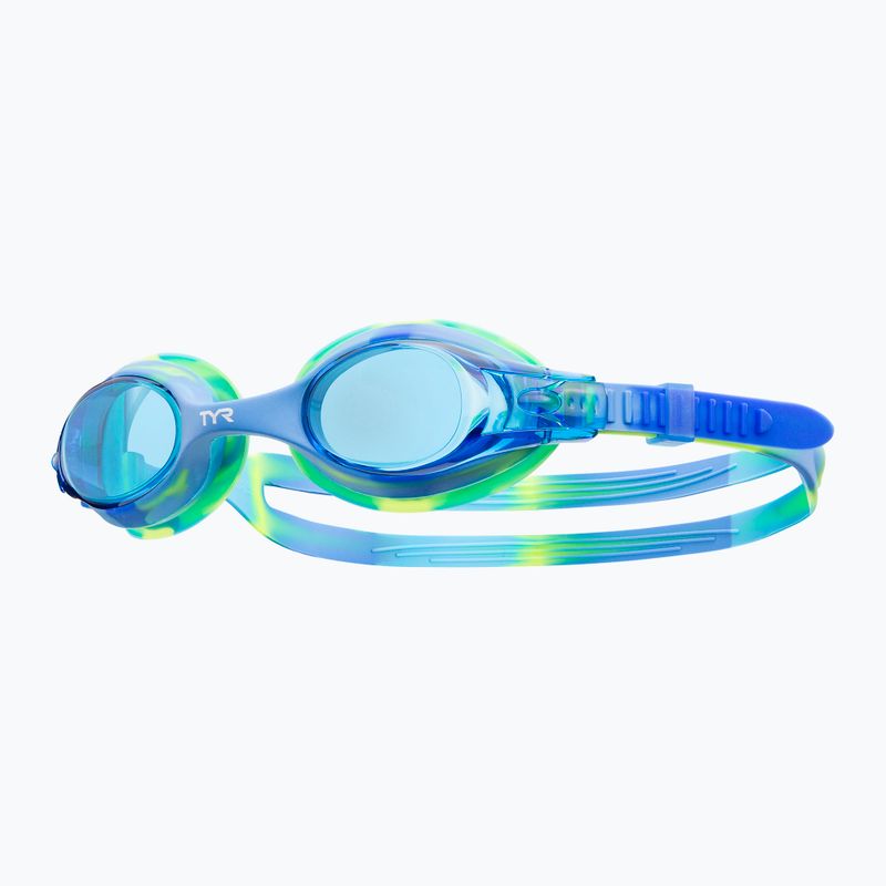 TYR Swimple Tie Dye are swimming goggles for children that combine durability and comfort. With hypoallergenic silicone seals, polycarbonate lenses with an anti-fog coating, and UVA/UVB protection, they ensure safety and excellent visibility. Suitable for children aged 3-10 years.