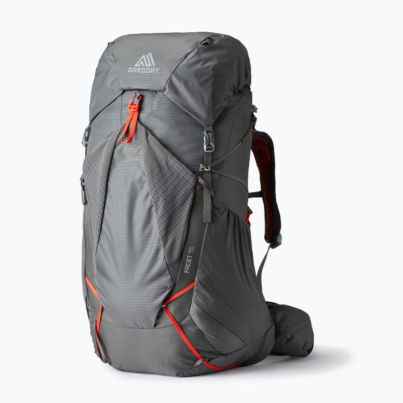 Another advantage of the women's trekking backpack Gregory Facet 45 l S sunset grey is the included rain cover, which provides protection against unexpected precipitation. The backpack is also compatible with a hydration system, allowing for convenient hydration while on the move. The thoughtful design of the backpack ensures that it is not only functional but also environmentally friendly.