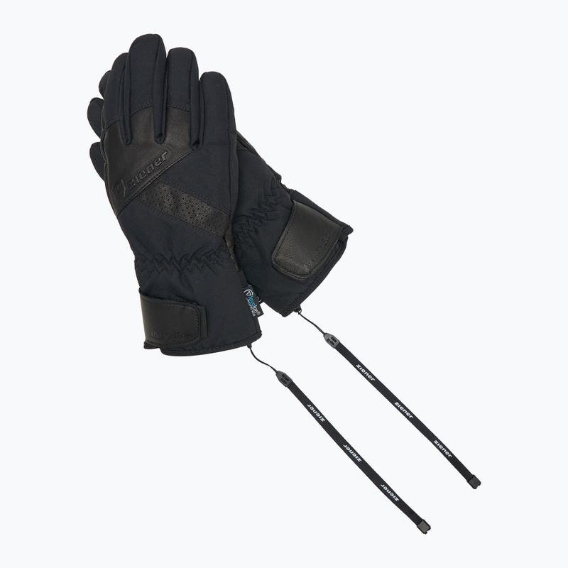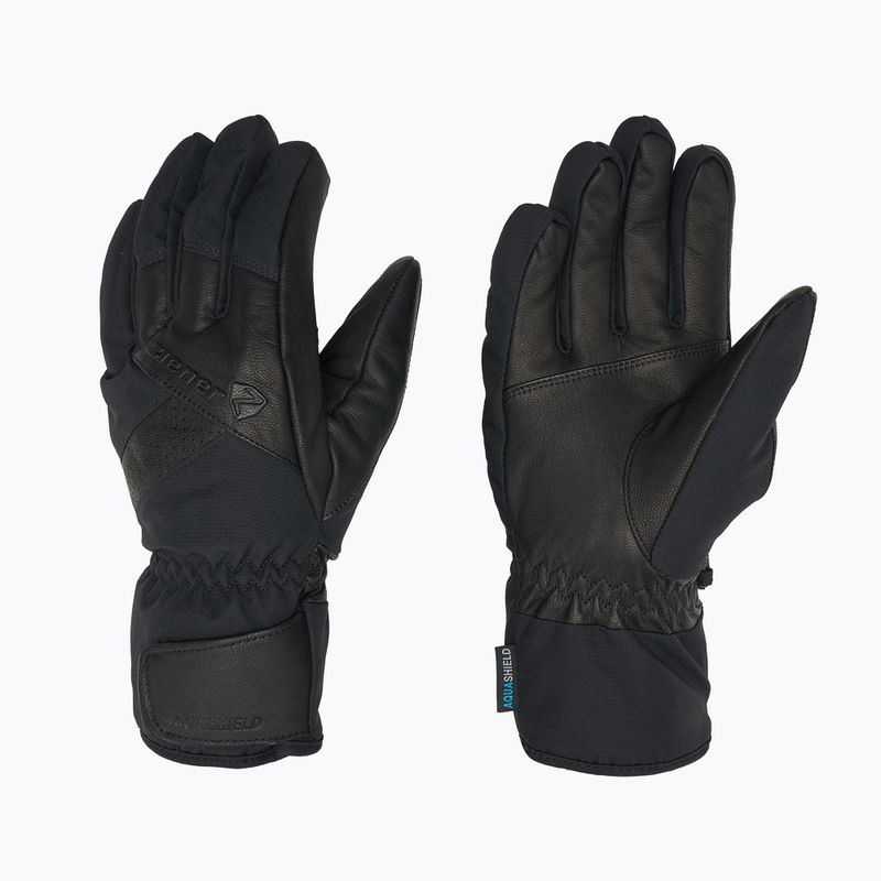 ZIENER Getter Aquashield AW men's ski gloves combine style with functionality. Thanks to the waterproof membrane and lavalan wool filling, they maintain an optimal temperature. Soft goat leather ensures durability, while the textured fabric on the exterior adds elegance. An adjustable strap and wrist leash guarantee comfort while wearing.
