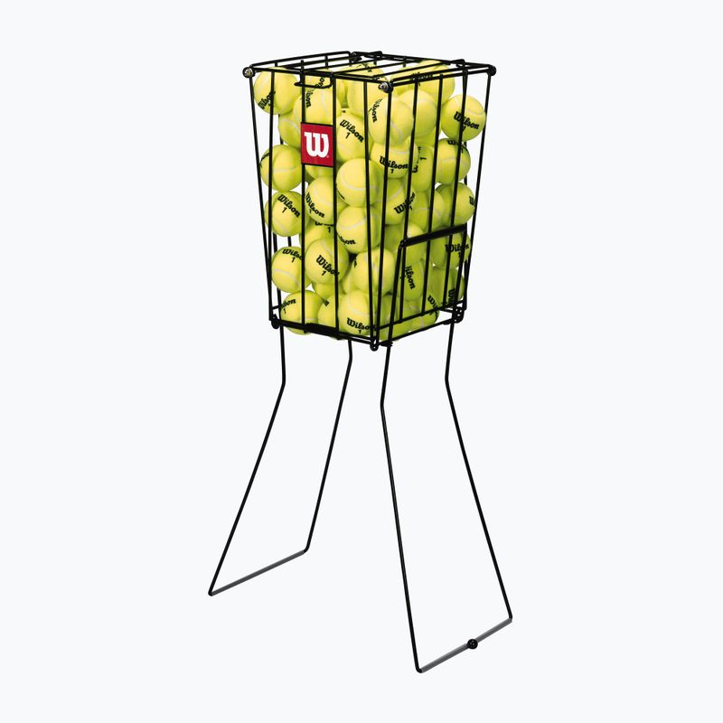 Wilson 75 Ball Pick Up Tennis Ball Basket black is an essential tool for every tennis enthusiast, both amateur and professional. It is made of durable metal, ensuring its longevity and sturdiness during intensive use. With its thoughtful design, the basket is lightweight, making it easy to carry around on the tennis courts.
