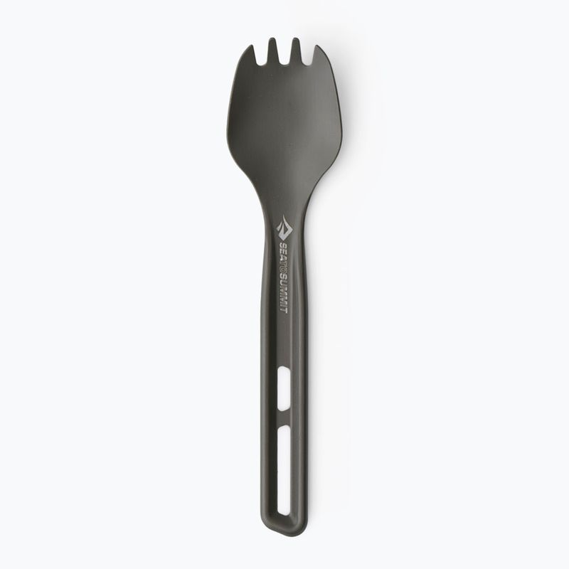Sea To Summit Frontier UL Short is a lightweight and durable spoon-fork, ideal for trekking and camping trips. Made from anodised aircraft-grade aluminium, it offers durability and resistance to damage. The unique shape of the handle allows for convenient stacking with other utensils, saving space in your gear.