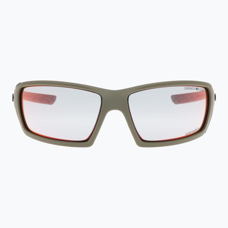 GOG Elbrus matt green/black sunglasses feature innovative lens technologies such as CHROMATIC G-LENS, REFLEX G-LENS, and SUPER DARK 4 G-LENS. CHROMATIC G-LENS allows the lenses to quickly adapt to changing lighting, which is particularly useful in dynamic conditions. REFLEX G-LENS helps reduce glare, enhancing visual comfort in bright light. The SUPER DARK 4 G-LENS technology provides maximum tint, making the glasses perfect even in very bright sunshine.
