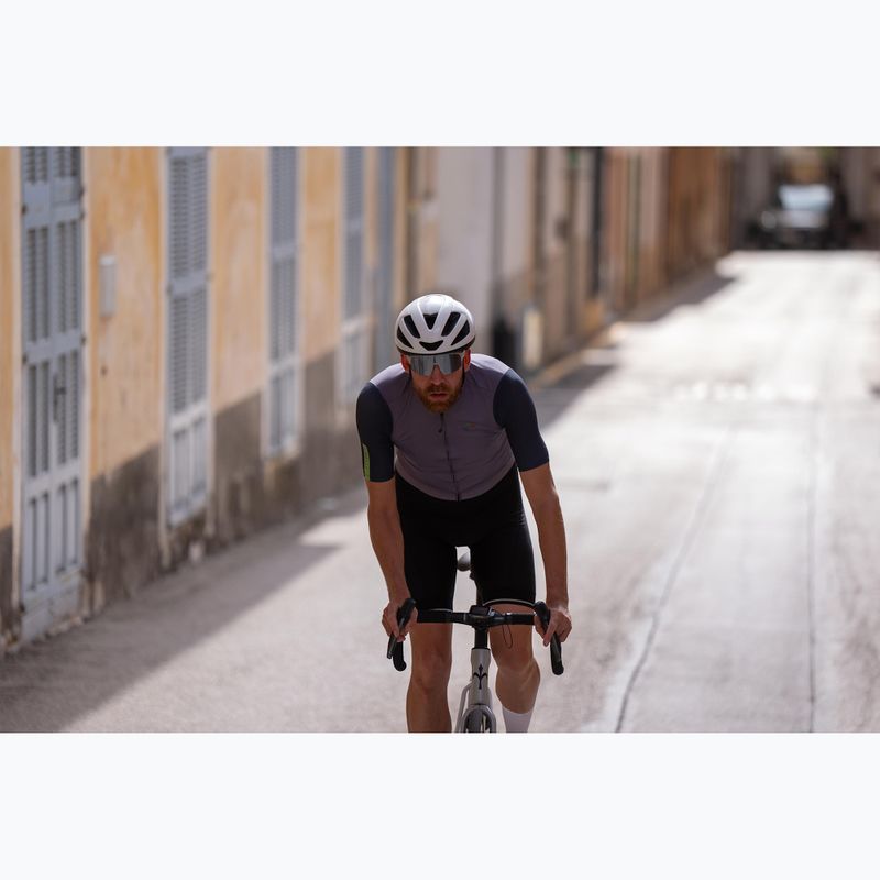 Men's cycling jersey Rogelli Fast purple / green is advanced technical sportswear designed with road cyclists in mind. Made of high-quality polyester, it provides excellent functional properties that are key to comfort and efficiency while cycling.