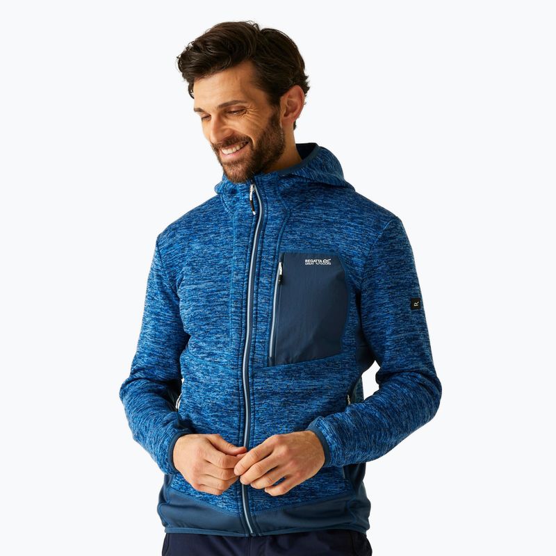 The men’s REGATTA Alven sweatshirt in snorkel blue/moonlight denim is equipped with a full zip, making it easy to put on and take off. Additionally, it has zippered pockets that offer a practical place to store small items. This allows the wearer to enjoy not only comfort but also functionality, which is invaluable during various activities.