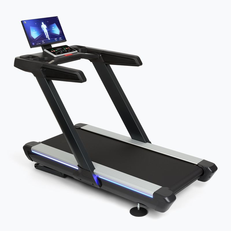 The treadmill offers electronic adjustment of the angle from 0 to 15 percent. Users can simulate uphill runs and varied training route profiles. The speed can be adjusted from 1 to 20 km/h.