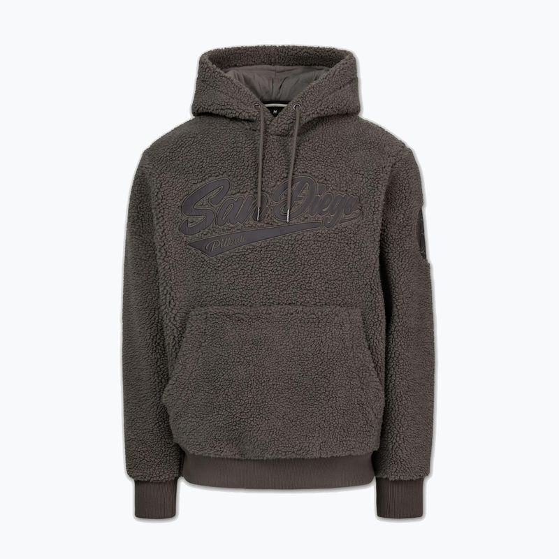 The polyester used to make the men's Pitbull Galaxy Hooded sweatshirt in taupe provides not only quick drying but also durability and ease of care. This material is crease-resistant, ensuring the sweatshirt maintains a neat appearance even after prolonged use. This makes the sweatshirt not only functional but also aesthetically pleasing.
