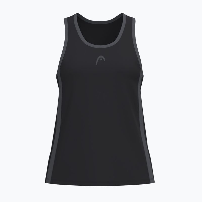 The HEAD Club 25 Tech Women's Tennis Shirt in Black is sleeveless, allowing for complete freedom of arm movement during play. The discreet HEAD logo adds elegance and subtle style. This combination of comfort and aesthetics makes the shirt an ideal choice for any female tennis player.