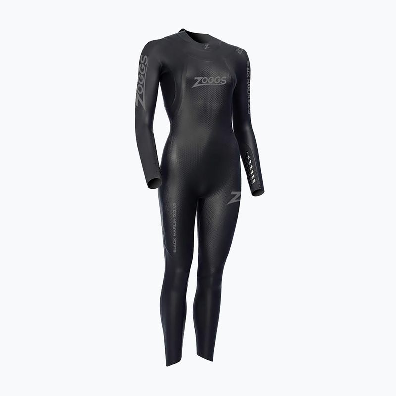 The women's swimming wetsuit Zoggs Black Marlin Tri 5/3/1.5 mm is an advanced race suit for freestyle and triathlon. The elastic neoprene with core compression, 5 mm panels for buoyancy, and 1.5 mm in the shoulders provide freedom of movement and hydrodynamics.