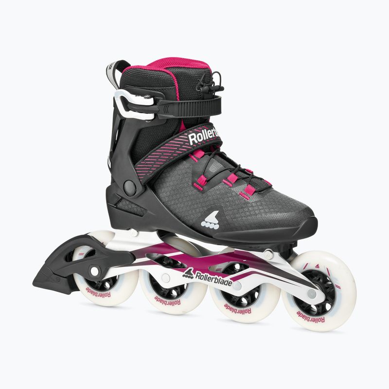 Women's Rollerblade Macroblade 90 W skates represent another step in skill development. The design with a higher cuff increases lateral support, the Footboard Sizer system allows for interior adjustment, and the 90 mm 85A wheels combine control with higher riding speed.