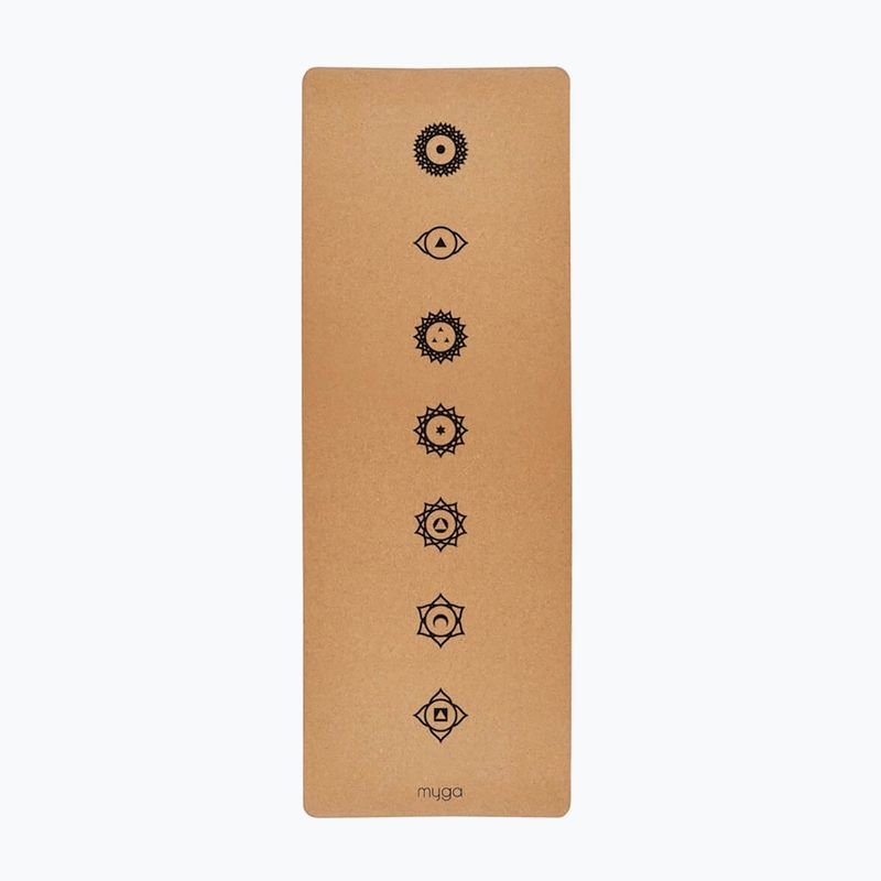 The Myga Czakra XL 6 mm yoga mat is an enlarged mat made from natural cork and eco-friendly TPE foam. It provides stability during intense and calm practices. The antibacterial surface and the pattern of 7 chakras support comfort and the precision of body positioning.