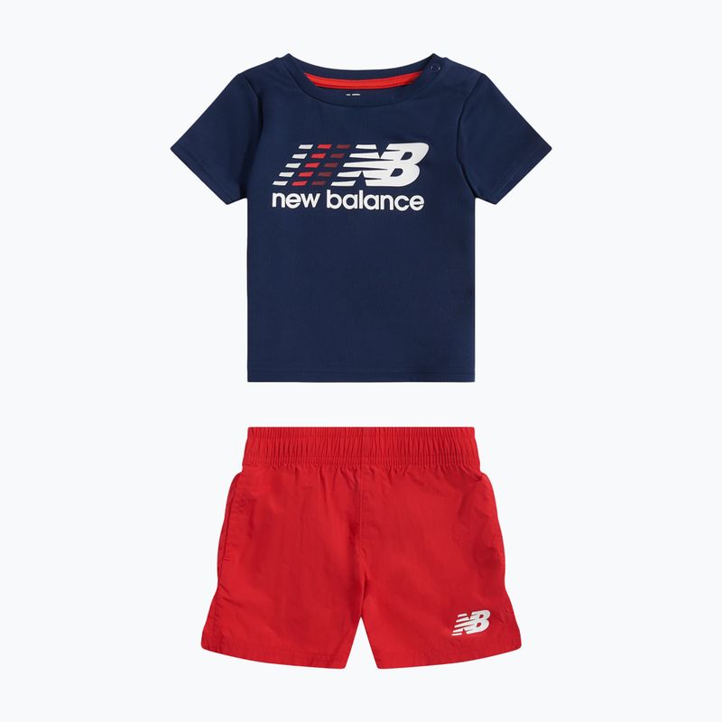 The New Balance Contrast Athletic Tee & Nylon Short children's set is a lightweight sports outfit consisting of a polyester fabric t-shirt and nylon shorts. It provides comfort and freedom of movement during activities.