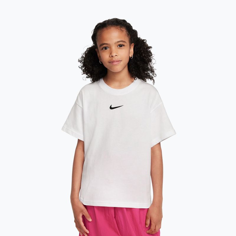 The Nike Sportswear Essential children's t-shirt provides wearing comfort thanks to the soft cotton fabric. The loose fit supports comfort in everyday wear, while the embroidered Swoosh logo adds a distinctive touch.
