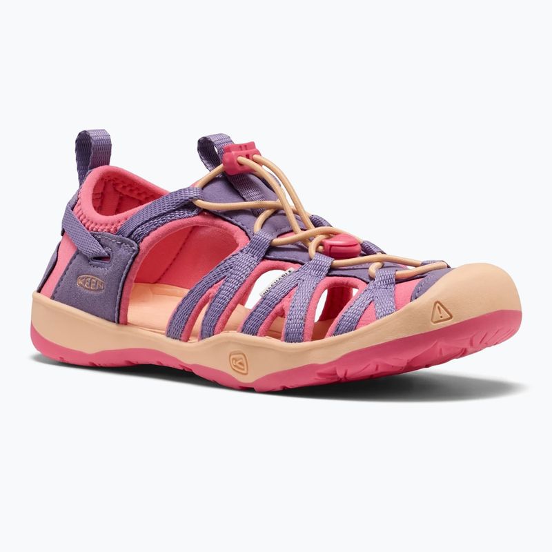 KEEN Moxie children's sandals are lightweight and comfortable sandals designed for active play. The soft construction, cushioned insole, toe protection, and quick bungee system provide comfort, safety, and easy wearing during everyday adventures.
