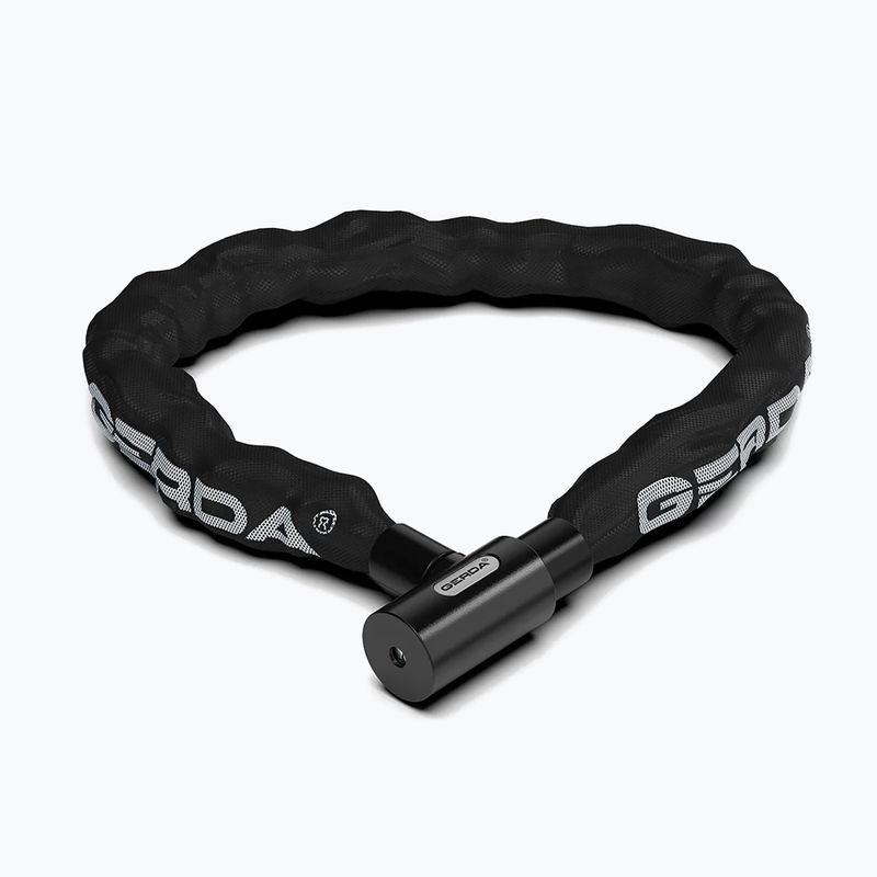 Gerda Contra Memo 900/6 is a bicycle chain with a shape memory function that facilitates quick winding and storage. The 6 mm steel links and textile cover provide basic protection and safeguard the frame against scratches.