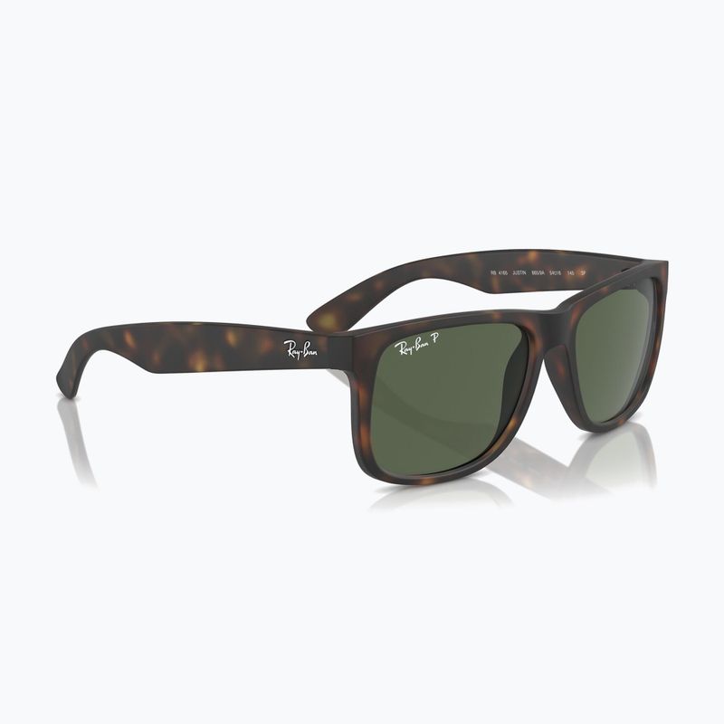 Ray-Ban Justin Classic havana/dark green polarized sunglasses are a modern model with a square shape and a matte frame. The polarised lenses reduce glare, providing visual comfort and effective protection for the eyes against UV radiation.