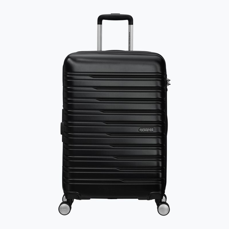 The American Tourister Flashline Spinner 67 75 l travel suitcase is a medium-sized model on 4 wheels made of durable ABS. It offers an expansion function, a TSA lock, and a well-organised interior that facilitates packing for trips.